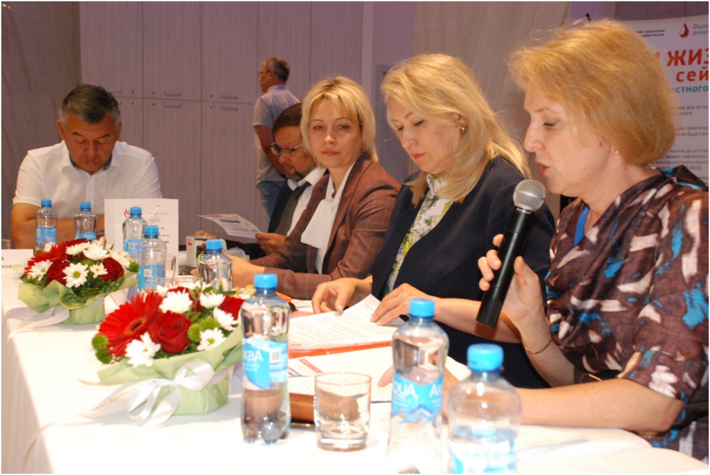 - Директор НФ «Национальный фонд развития здравоохранения», председатель Общественного совета ФМБА России, заместитель председателя Координационного совета по донорству крови и костного мозга при Общественной палате Российской Федерации Стефанюк Елена Ивановна с докладом на тему «Донорство крови и донорство костного мозга. Межведомственное партнерство и возможности совместных инициатив»;